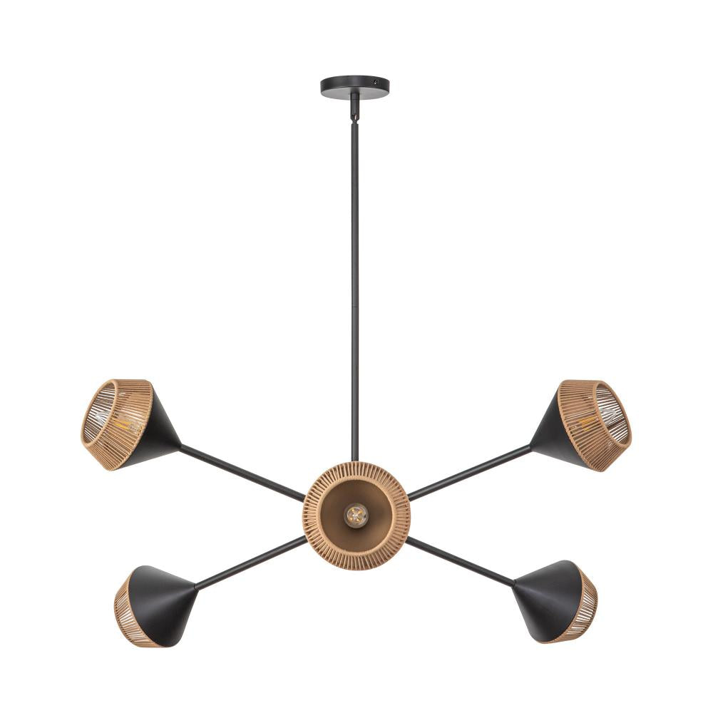 ALORA MOOD Lighting presents the Daphne 38-in Chandelier, beautifully crafted with a combination of Matte Black and Brown Cotton Rope. This 6-light chandelier brings a playful geometric charm inspired by Japanese design, complimented by mid-century elements. Each fixture not only illuminates your indoor or outdoor space but also serves as a striking centerpiece.