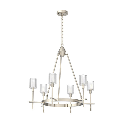 Alora Lighting SALITA CH314306PNRC Chandelier Traditional - Ribbed Crystal Polished Nickel. Towering High The Simple But Modern Salita Collection Features Delicate Arms That Rise Above A Refined Structure To Create Your Desired Look First Choose Between Clear Glass Or Ribbed Glass Shades Followed By One Of Our Impressive Finishes Offered In Polished Nickel Urban Bronze Or Vintage Brass Alora Lighting MPN: CH314306PNRC