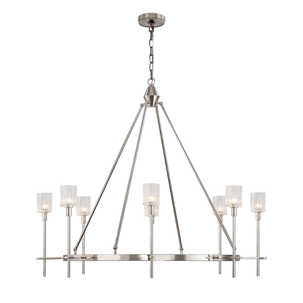 Alora Lighting SALITA CH314308PNRC Chandelier Traditional - Nickel. Towering High The Simple But Modern Salita Collection Features Delicate Arms That Rise Above A Refined Structure To Create Your Desired Look First Choose Between Clear Glass Or Ribbed Glass Shades Followed By One Of Our Impressive Finishes Offered In Polished Nickel Urban Bronze Or Vintage Brass Alora Lighting MPN: CH314308PNRC