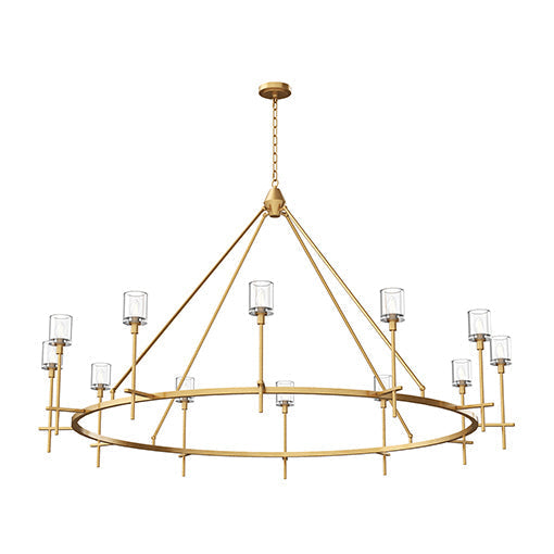 Alora Lighting SALITA CH314312VBCC Chandelier Traditional - Brass. Towering High The Simple But Modern Salita Collection Features Delicate Arms That Rise Above A Refined Structure To Create Your Desired Look First Choose Between Clear Glass Or Ribbed Glass Shades Followed By One Of Our Impressive Finishes Offered In Polished Nickel Urban Bronze Or Vintage Brass Alora Lighting MPN: CH314312VBCC