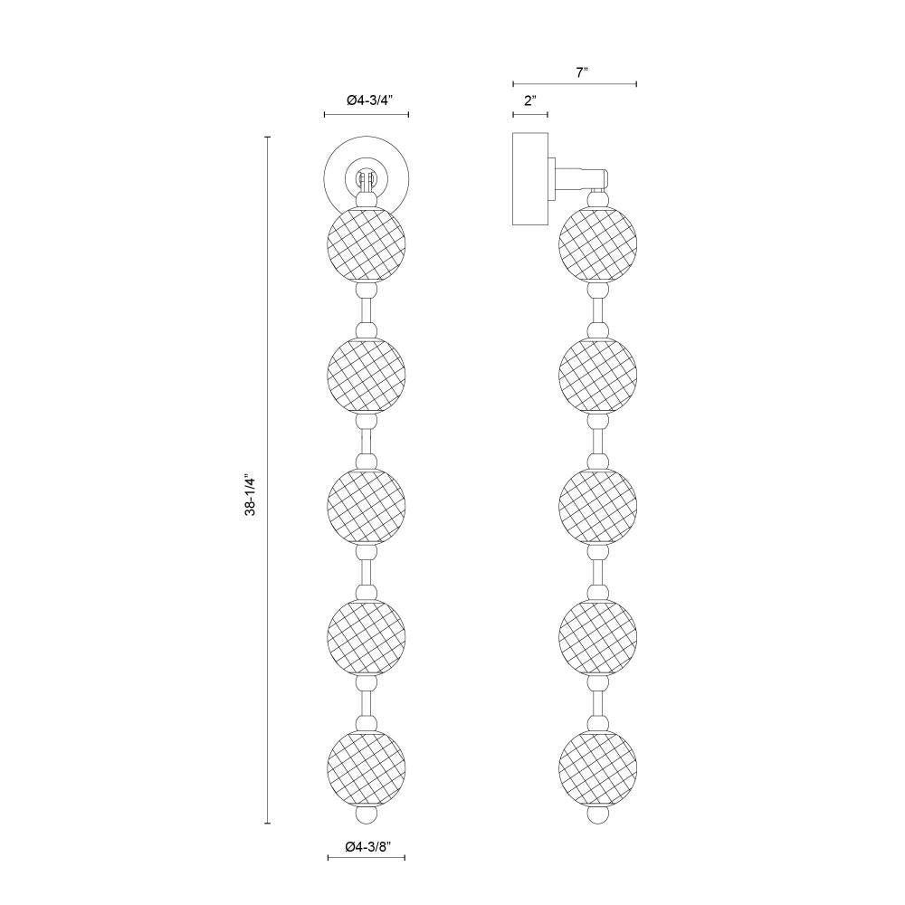 The ALORA Lighting Marni is a 38-inch Wall Vanity Light designed to provide both functionality and elegance. With a polished nickel finish, this LED fixture features meticulously cut spherical shades that create stunning beams of illumination, adding luxury and interest to any design.