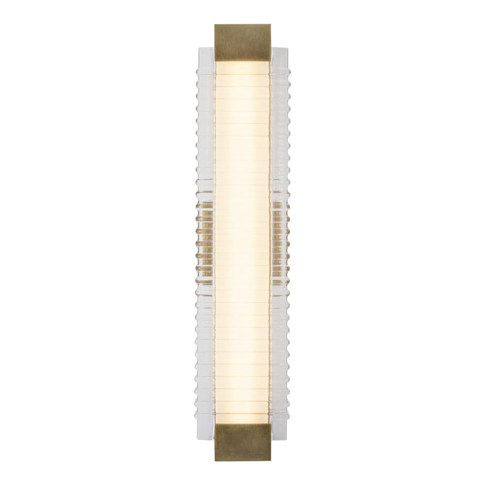 ALORA Lighting presents the Alai 25-in Vintage Brass/Ribbed Glass LED Wall Vanity Light Fixture, perfect for adding a touch of elegance to your space. The fixture features a stunning ribbed glass design reminiscent of gentle ocean waves, providing a unique aesthetic to any room.