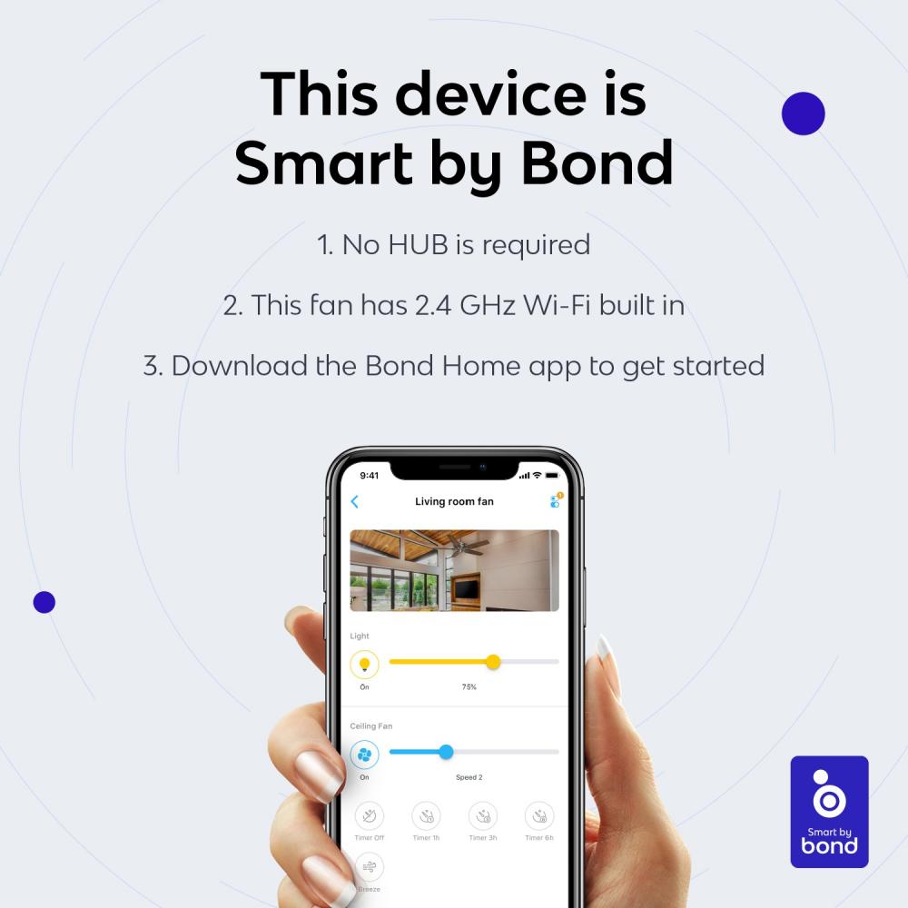 Its modern 3-blade design, adorned with sleek matte black accents, adds a touch of sophistication to any room. Choose your desired configuration, with or without the optional light kit, and experience the convenience of smart fan technology, powered by the Smart by Bond app, or opt for the included handheld remote for effortless control.