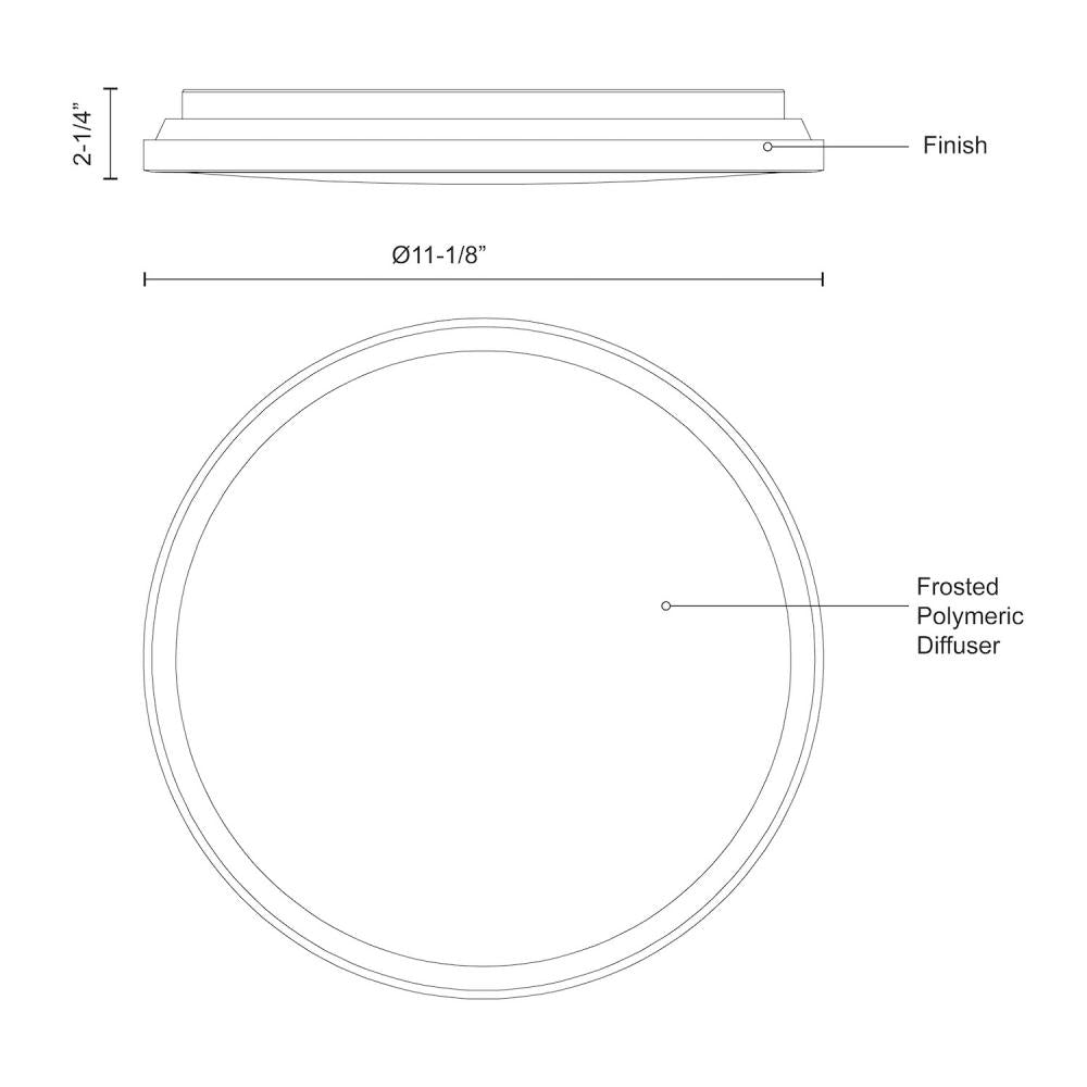 The Kuzco Brook 11-in White LED Flush Mount is a stylish and functional lighting solution. It features a circular steel base with a polymeric body and frosted acrylic lens, making it not only aesthetically pleasing but also efficient with a 17W output.