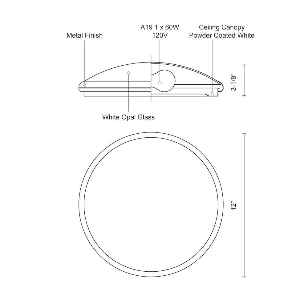 This 60W watt, single lamp ceiling fixture features a sleek design with white opal glass and is available in a chrome finish.