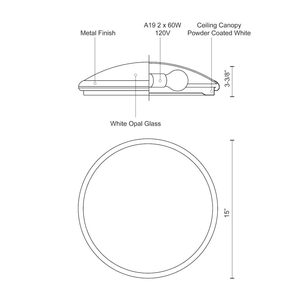 - Two lamp flush mount with white opal glass
