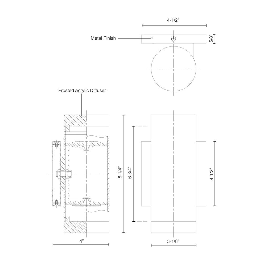 Kuzco 601432BK-LED Wall Sconce, 8-in, LED, Up/Down, Black