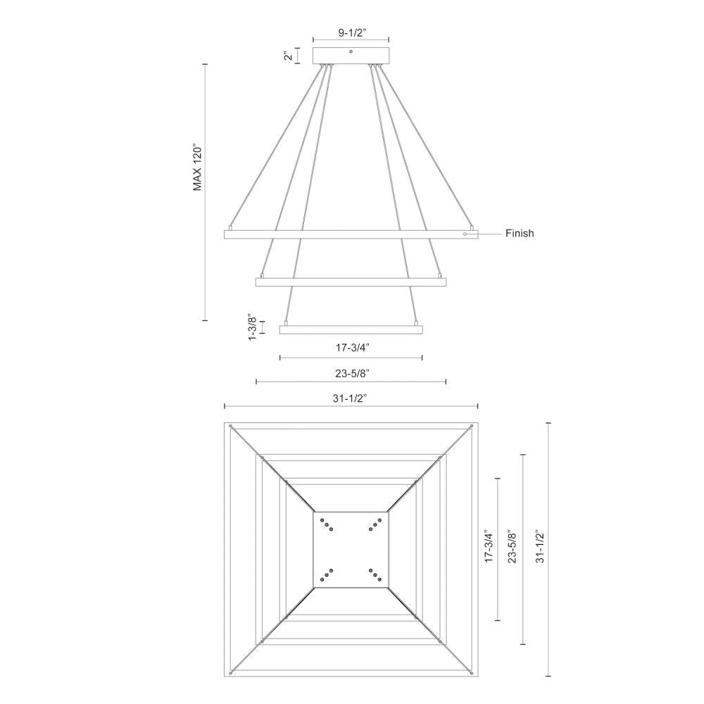 The Piazza 32-in White LED Chandelier by Kuzco features a suspended rectilinear frame that emits soft luminance downward from the continuous perimeter opal diffuser. The aluminum extrusion houses a secondary set of LED lights that send ambient illumination toward the ceiling. The minimal orthogonal outline of the PIAZZA series creates an airy effect with the center of the fixture transparent and open.