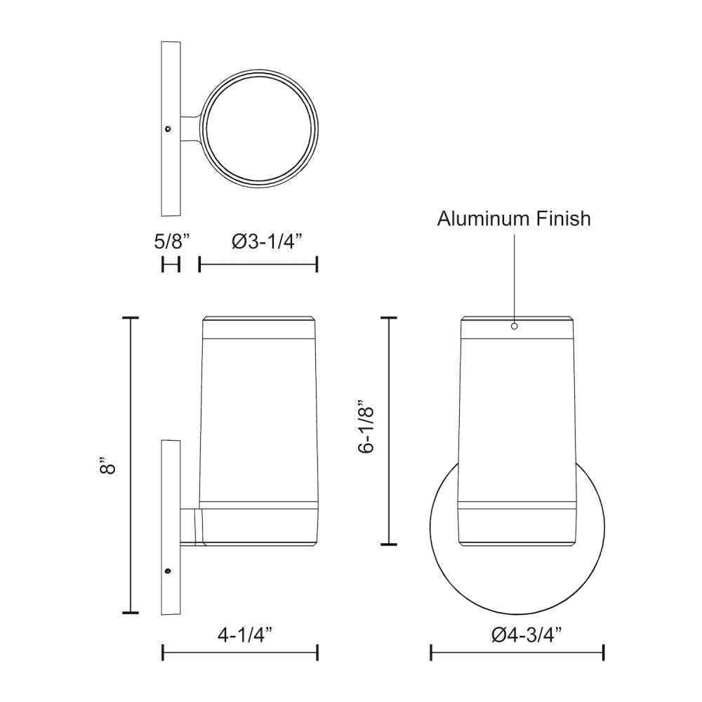 Kuzco Lighting Inc. VARO EW64508-BK Exterior Transitional - Black. Architectural Exterior Wall Sconce Die Cast Cylindrical Aluminum Body With Frosted Diffuser Enclosed Inside Glass Pc Cover To Radiate Light Around The Fixture Kuzco Lighting Inc. MPN: EW64508-BK