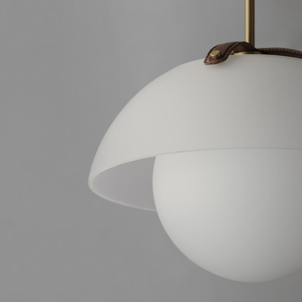 Studio M DOMAIN SM31014FTNAB Pendant Traditional - Natural Aged Brass. Emblematic Of His Casual Sophisticated Style Mat Sanders 39 Domain Series Include An All Inclusive Assortment Of Applications And Finishes Featuring A Truncated Sphere Open At Its Top And Bottom An Internal Globe Of Opal White Glass Shades Provide Ample Led Lighting The Outer Glass Shade Is Suspended By A Strap Of Stitched Leather To Compliment The Metal Finish Available In Acid Etched Satin White Glass With Natural Aged Brass Crystal Clear Glass With Polished Black Nickel Or Smoke Striped Clear Glass With Matte Gunmetal The Sconces In Consideration Of Damp Locations Have Forgone The Stitched Leather Detail The Standout Two Light 36 Inch Pendant Is Scaled For Island And Dining Use Semi Flush Mount And Complementary Sconces Round Out This Collection Presenting A Complete Assortment Of Ceiling And Wall Mounted Lighting Products Suitable For Use In Bathrooms And Other Interior Spaces Mat Sanders 39 Diverse Period Influences Have Created A Fascinating Combination Of Design Elements Studio M MPN: SM31014FTNAB