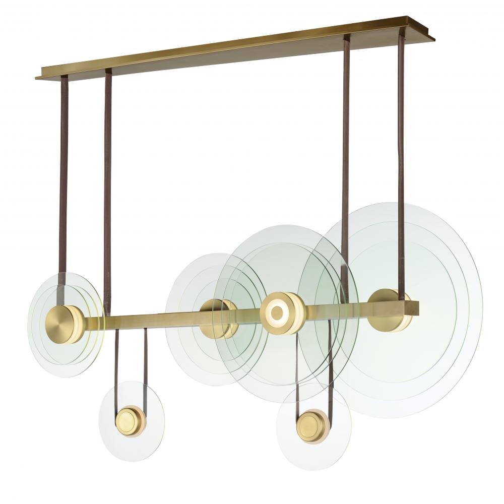 Studio M STRATUM SM24406CLNAB Pendant - Natural Aged Brass. Clear Slabs Of Glass A Half Inch Thick Are Pressed Together Between Two Discs Finished In Natural Aged Brass As The Glass Approaches The Center Each Slab Of Glass Increases In Dimension Creating A Gradation Of Light Revealing The Glasses 39 Shape And Character Dedicated Led Lighting Emits From Concealed Polycarbonate Tubes Evenly Distributing The Light Source In All Directions These Led Tubes Terminate At Brass Discs Supported By Dark Brown Leather Straps That Both Suspend The Pendants And Conceal The Electrical Wiring Stitched Within Them Elevate Your Lighting To The Next Stratum Integrating Bygone Modern Design Elements With Innovative Technologies And Expert Craftsmanship Studio M MPN: SM24406CLNAB